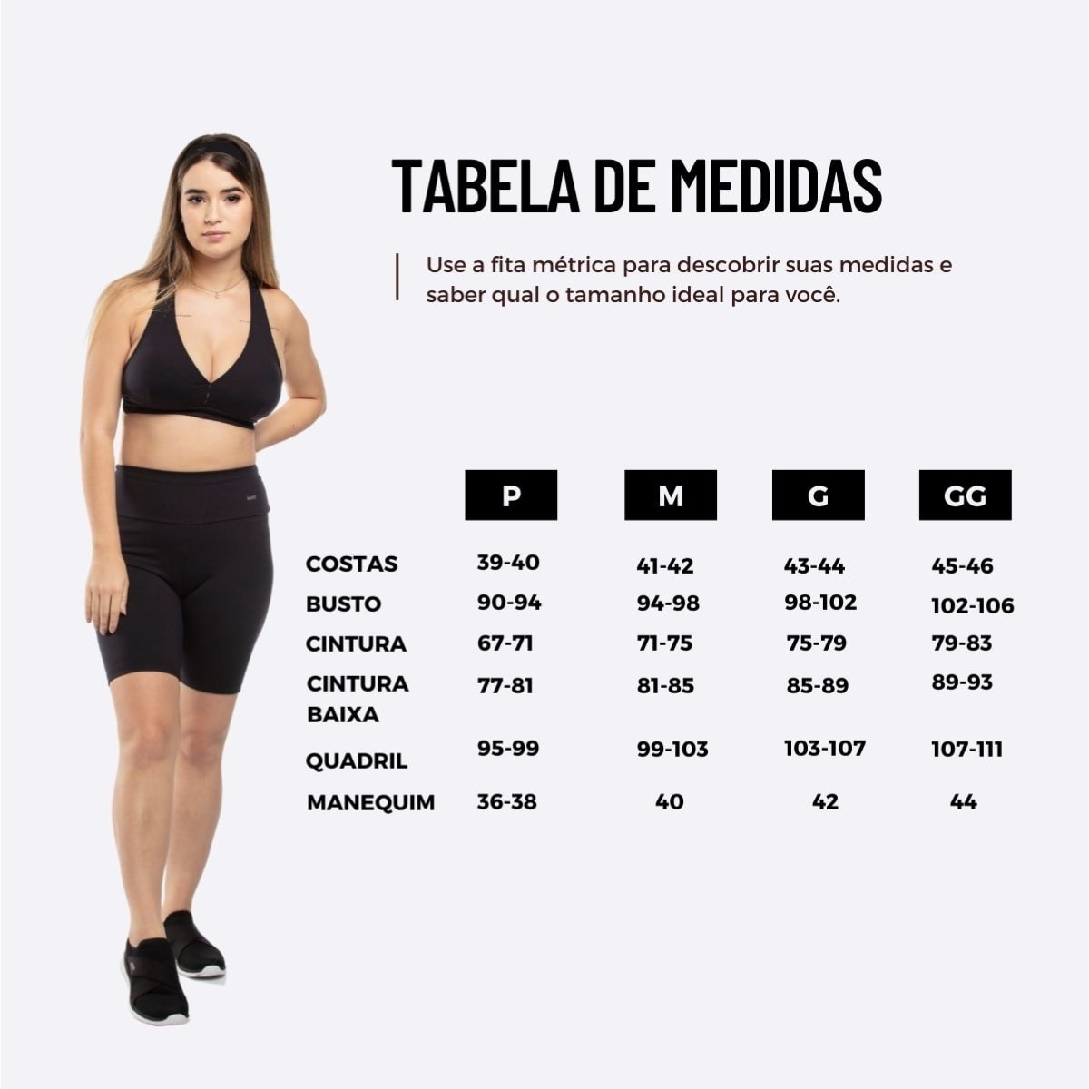 - Tecido: Malha Light (Poliamida premium com elastano)