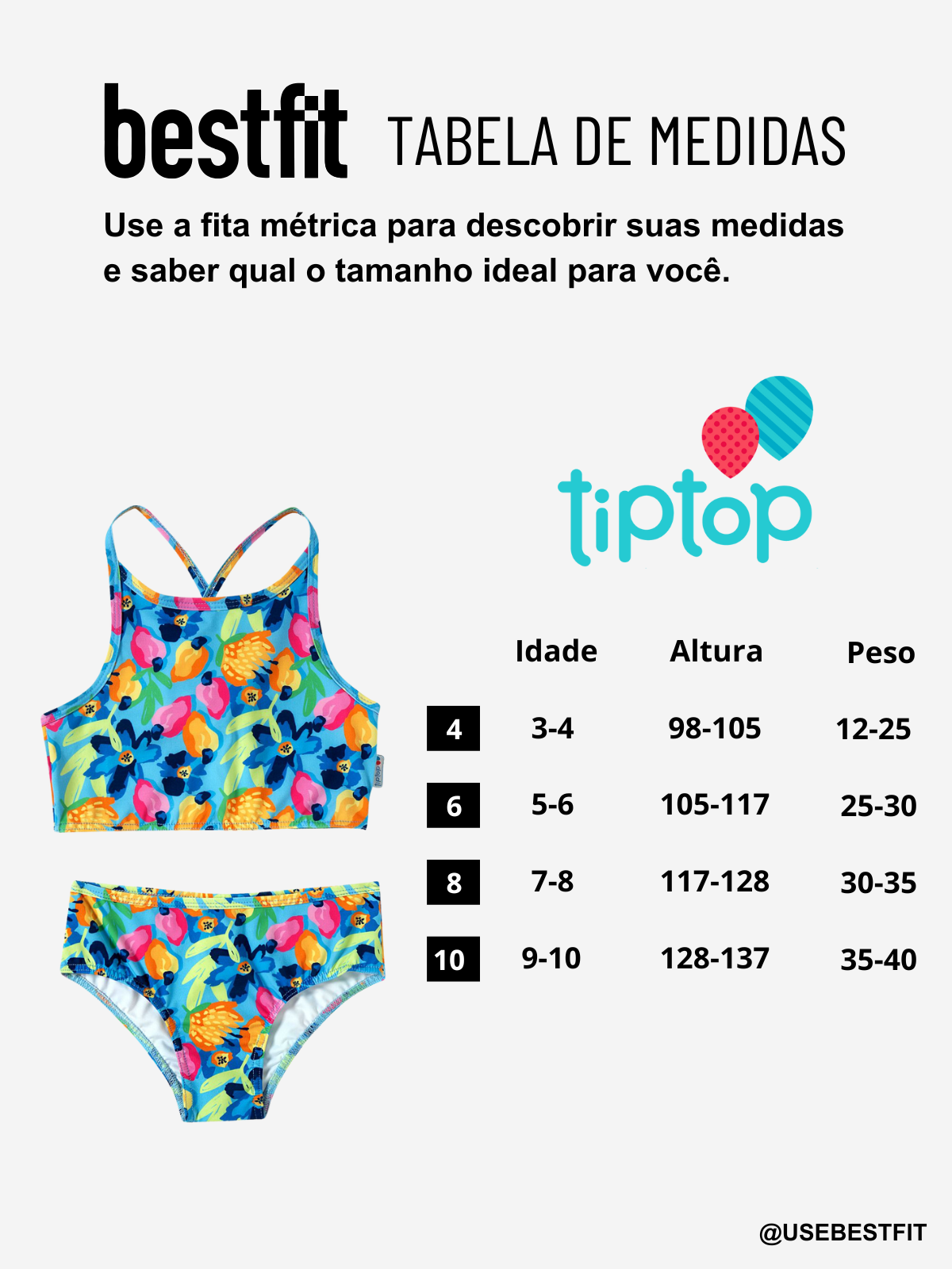 Biquini Top e Calcinha Infantil Frutas Kids Tip Top Tip Top é perfeito para acompanhar as pequenas em dias de sol, combinando charme, conforto e segurança. Confeccionado em tecido com elastano e tecnologia UV 50+, protege a pele delicada das crianças contra os raios solares enquanto garante liberdade de movimento. O conjunto traz uma estampa encantadora de passarinhos coloridos sobre galhos em tons suaves de rosa, com top de alças cruzadas nas costas e calcinha combinando. Ideal para meninas de 4 a 10 anos, é a escolha certa para um visual fofo e protegido durante o verão.