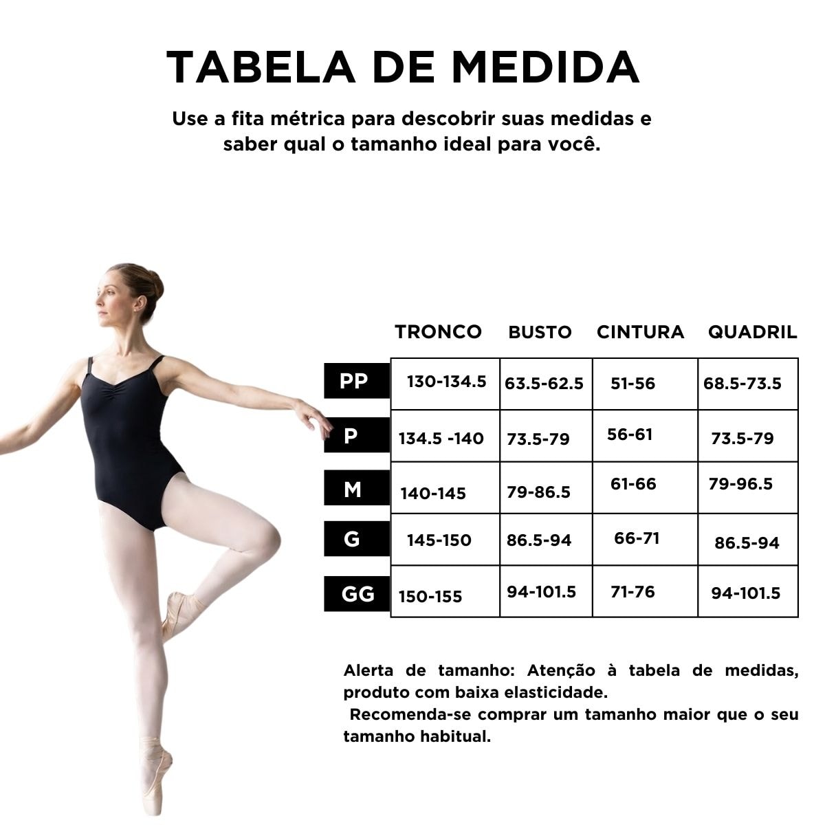 Alerta de tamanho: Atenção à tabela de medidas, produto com baixa elasticidade (10%). Recomenda-se comprar um tamanho maior que o seu tamanho habitual.