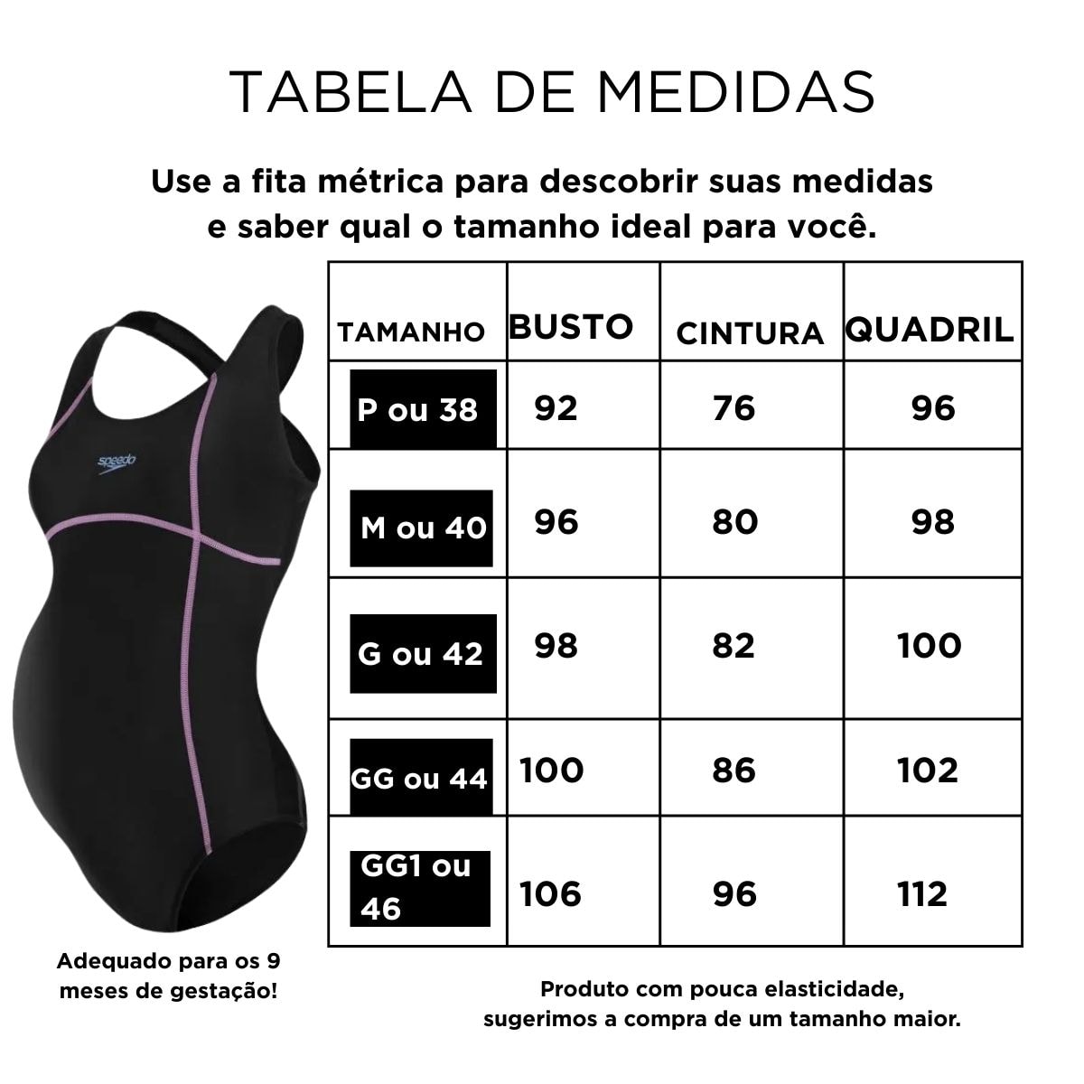 Cloro e bronzeadores podem manchar o produto. Após o uso, enxague bem a peça em água fria