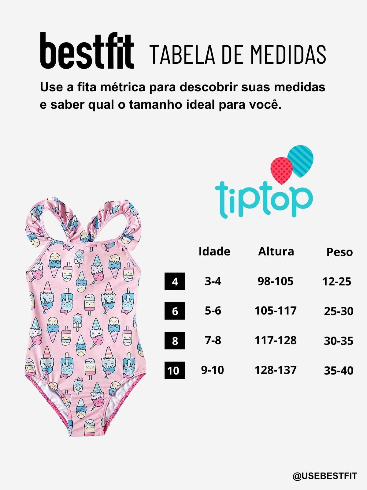 Conte-nos sobre sua experiência com Maiô Praia Infantil Sorverte Proteção UV 50+ Tip Top Rosa