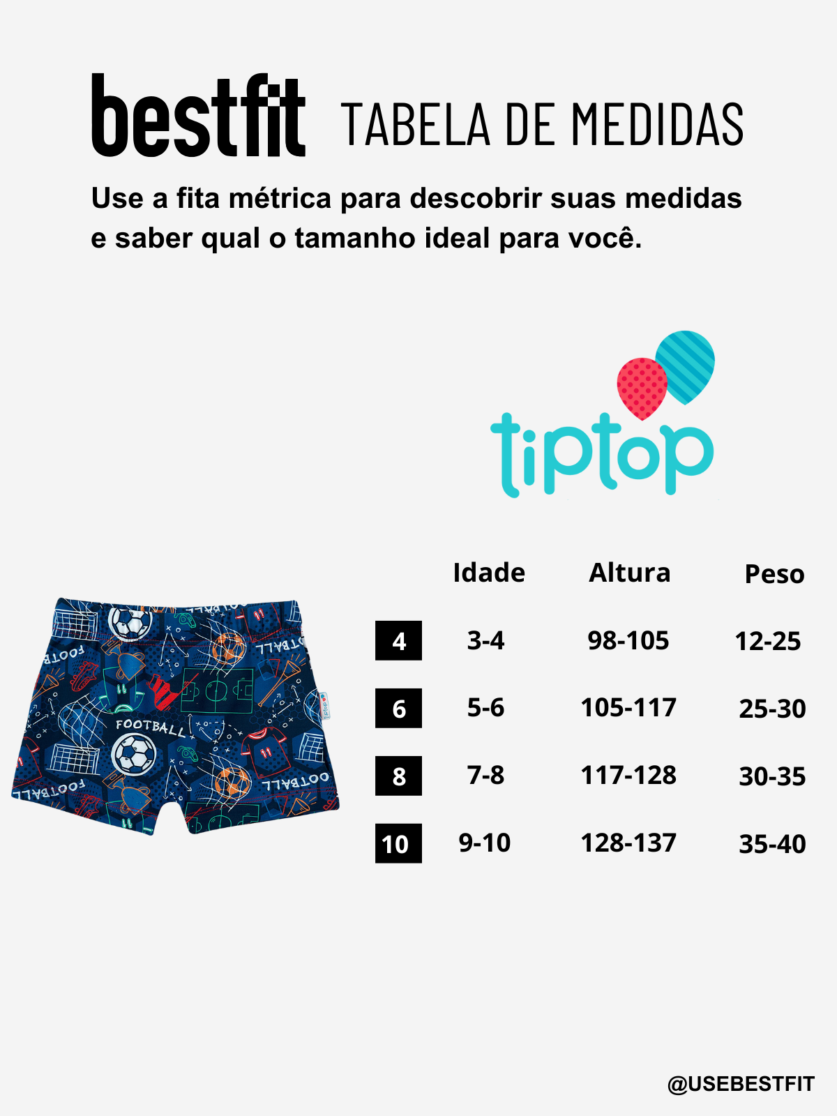 Sunga Shorts Infantil Praia Futebol Tip Top é a escolha perfeita para acompanhar os pequenos em dias ensolarados com conforto e segurança. Com proteção solar permanente UV50+, estampa divertida e tecido elástico de toque suave, ele garante liberdade de movimento e muito estilo nas brincadeiras à beira-mar ou na piscina. Garanta já o seu e proporcione proteção e diversão para o seu pequeno com a qualidade Tip Top!